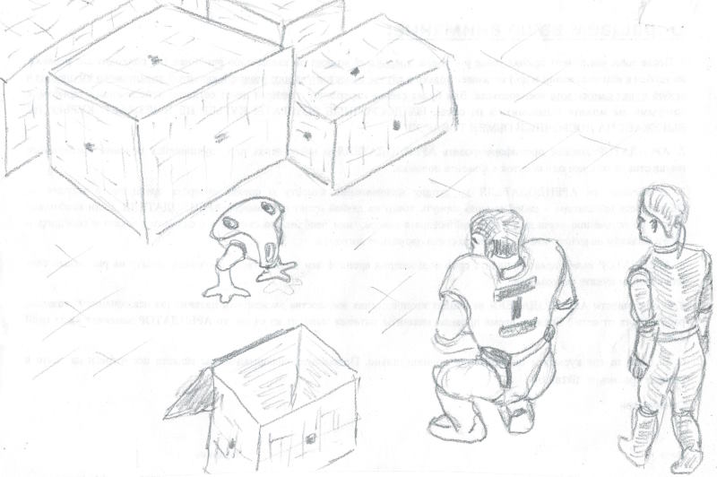 Гримен говорил так же весьма неприветливо, словно за одну ночь их всех подменили. Брод знал причину всему этому, потому не обратил внимание. Он быстро удалился в смежный ангар, где теперь уже кроме «Вакиндзачи» находилась разбитая «Ласточка» и пару экспериментальных образцов «Гарпуна». У дальней стены стояли ящики и контейнеры с запчастями и амуницией к роботам. Брод быстро пробежался по маркировкам и на одной из них заметил гравировку «рем-боты Хиеко». «Какие же они вам рем-боты!». Брод использовал имевшийся у него радио-ключ Гримена, чтоб открыть первый контейнер. Внутри находились 2 дрона класса «Хиеко» совершенно нетронутые.