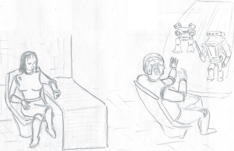 Тулулу ходила по комнате в своей с Бомбастой каюте внутри корпуса в космопорте, над которым гордо реял флаг «Зова». После неприятного разговора с Карлсоном, а затем ругани с прилетевшими Хугином и Мунином, она не находила себе места.