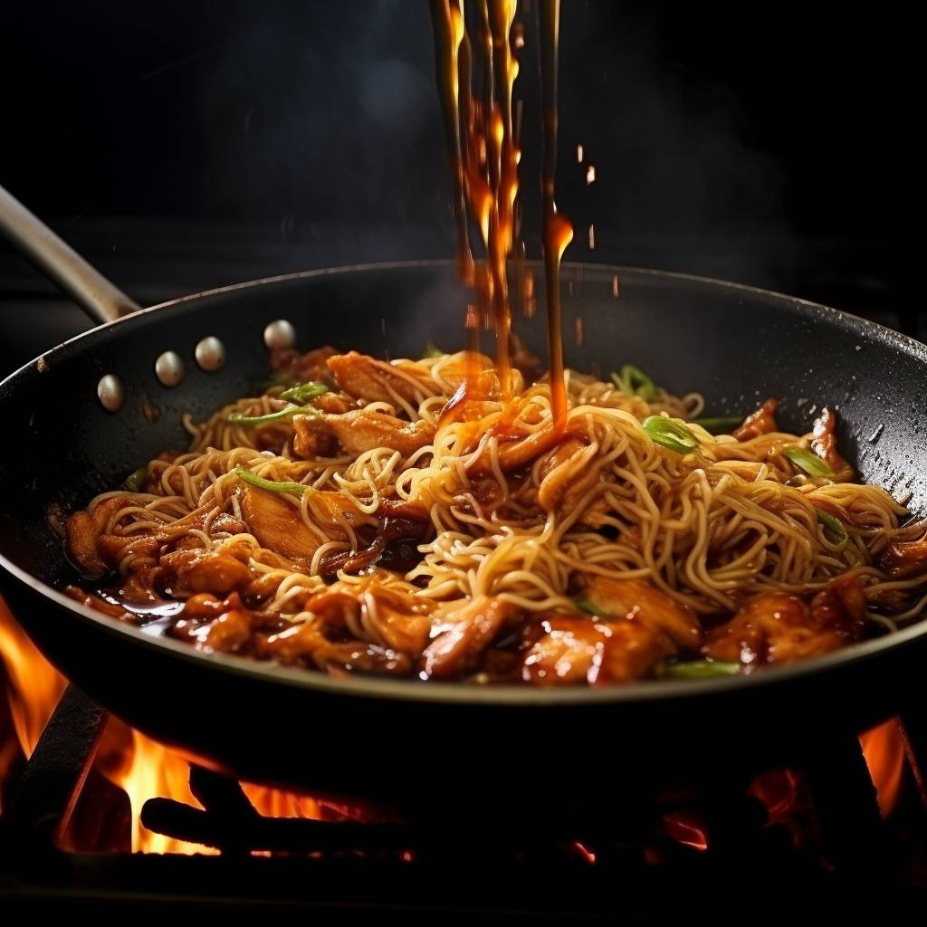 Конечно, вот простой рецепт жареной лапши с курицей на сковороде: