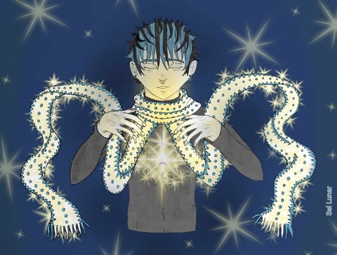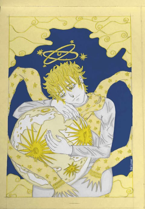 Золотая пыльца исходящий из рук юноши, танцуя кружилась во всём пространстве, да светил собственным светом.