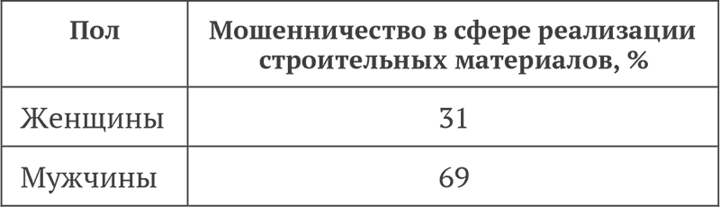 Таблица 2.7. Распределение потерпевших от мошенничества в сфере поставки строительных материалов по половому признаку
