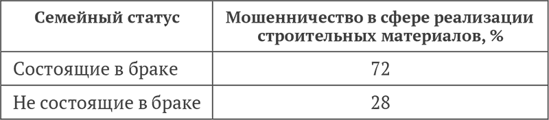 Таблица 2.8. Распределение потерпевших от мошенничества в сфере поставок стройматериалов по семейному положению