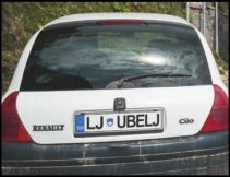 Nicht nur Sprachbarrieren wollen die Betreiber der Hütte überwinden, die sich im alten Zollhaus auf der slowenischen Seite der Passhöhe in 1369 Meter Seehöhe befindet. Sie nennen sie deshalb „Haus der Begegnung“. Wir haben leider einen Ruhetag erwischt, stellen aber fest, dass die Wirtsleute Humor haben dürften. Ihr Auto (das einzige, das herauffahren darf) hat ein Fantasiekennzeichen: „LJ“ für Ljubljana, danach die Buchstabenkombination „UBELJ“, was zusammen Ljubelj ergibt, das slowenische Wort für Loibl. Dass sie regelmäßig mit dem Wagen heraufkurven müssen, dürfte übrigens der Grund sein, warum die alte Straße auf slowenischer Seite in einem so viel besseren Zustand als auf der österreichischen ist.