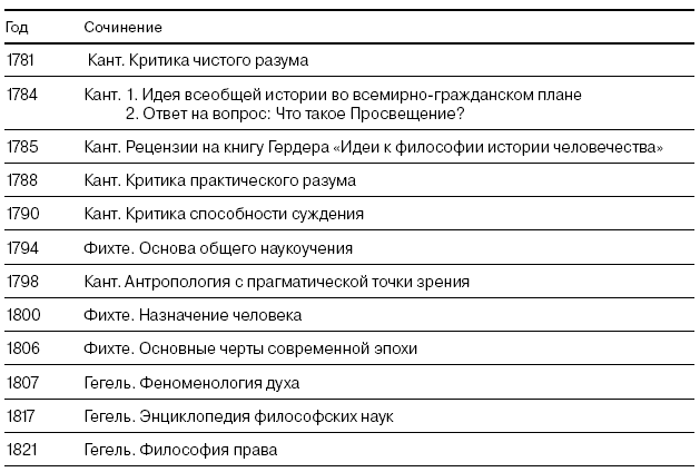 Еще один великий итог немецкого Просвещения – немецкая трансцендентальная философия И. Канта (1724–1804), И.Г. Фихте (1762–1814), Ф.В.Й. Шеллинга (1775–1854) и Г.В.Ф. Гегеля (1770–1831), в рамках которой окончательно сформировалась теория культуры как самостоятельная ветвь гуманитарной мысли (табл. 2).