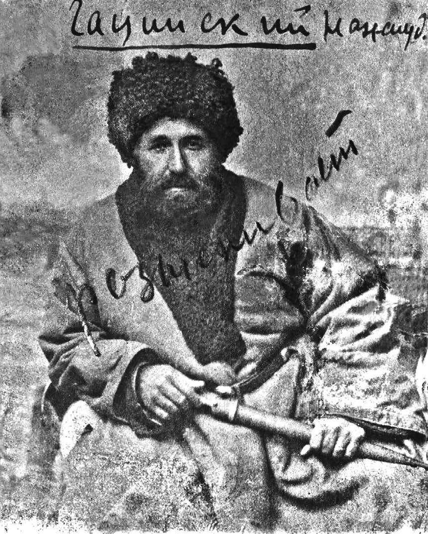 Нажмудин Гоцинский (1859–1925) – политический деятель и духовный лидер. Председатель Духовного совета (муфтий) Союза объединенных горцев Северного Кавказа и Дагестана. Один из руководителей контрреволюционного движения в Дагестане в 1917–1921 годах. После подавления мятежа в Дагестане, Гоцинский бежал в Чечню. С 1921 года вплоть до ареста скрывался в Чечне и Хасавюртовском округе