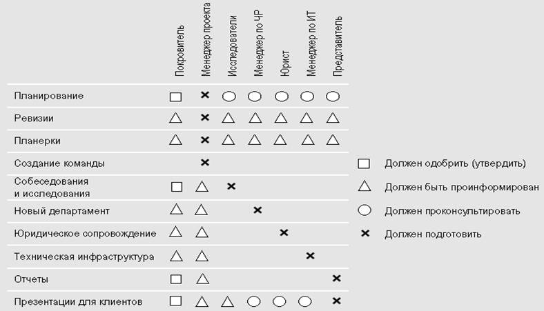 Для примера можно привести карту распределения полномочий для пилотного проекта в сфере электронной торговли, рис. 1.5.