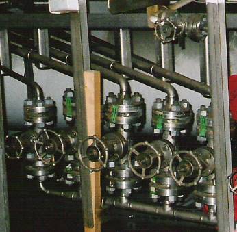 Регулирующие клапаны, предохранительные клапаны, трубопроводы и выходы настроены так же, и используются те же или аналогичные компоненты. Некоторые клапаны, вероятно, будут иметь пневматический или гидравлический привод для облегчения удаленного и быстрого закрытия в аварийной ситуации. Кроме того, некоторые елки могут иметь составной блок клапанов вместо отдельных клапанов, сфланцованных вместе.