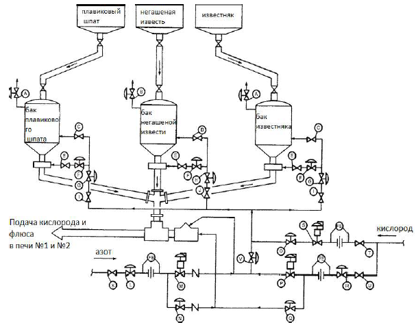 Рис. 3.1. Установка клапанов в технологической схеме пневмотранспорта кокса [3]