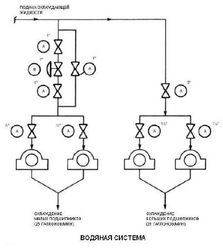 Рис. 3.2. Схема установки арматуры в системе водяного охлаждения прокатного стана [3]