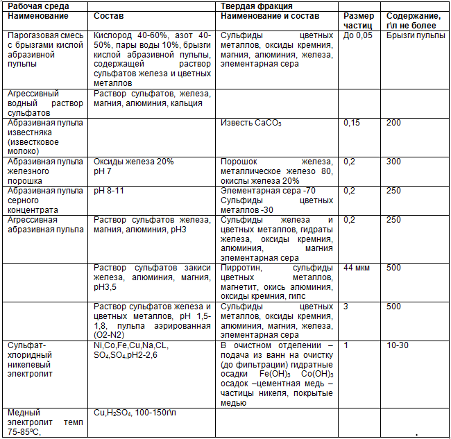 Рабочие среды никелевого производства приведены в табл. 3.4.