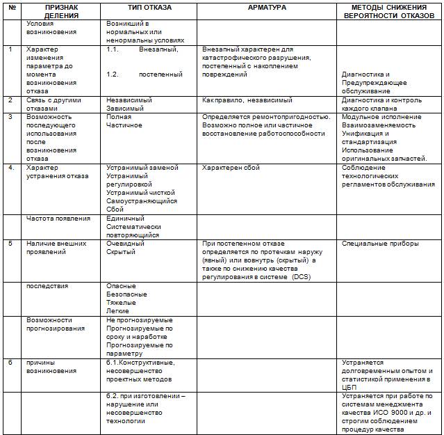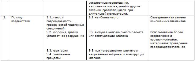 Табл. 2.13. Классификация отказов клапанов