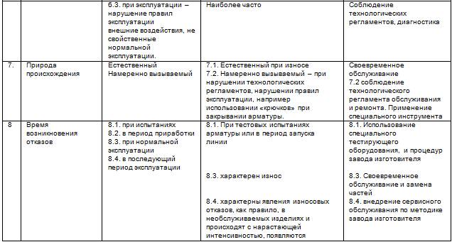 Надежность работы клапана связана как с технологией и самим процессом, так и с особенностями конструкции клапана. Для определения связи работы клапана с его надежностью ниже приводим таблицу классификации отказов, характерных для клапанов, табл. 2.13.