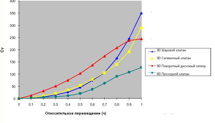 Основой выбора клапана является расчет расходной характеристики. Собственные пропускные характеристики арматуры различных типов представлены на рис.1.