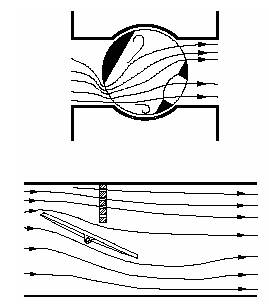 Рис. 2. Особенности протекания потока через шаровой кран и дисковый затвор