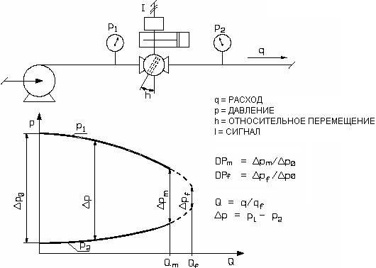 Рис. 5. Определение рабочей (установленной) расходной характеристики клапана в трубопроводе