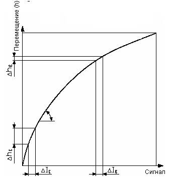Рассмотрение изменений расхода от изменения сигнала регулирования (например, относительного малого перемещения клапана) позволяет найти погрешности в регулировании за счет нахождения отклонений от линейности, как показано на рис.7.