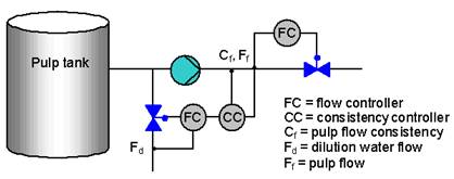 Следующий важный контур – это контур разбавления. Регулирование разбавлением улучшает стабильность процесса. Окончательный элемент в контуре, прецизионный и ответственный элемент разбавления массы, оставался до недавних пор главным условием для стабильного управления концентрацией. Традиционное управление концентрацией, основанное на положении разбавительного клапана, обеспечивает адекватный контроль за отклонениями за длительный период, но эти контуры могут быть дестабилизированы изменениями в давлении разбавительного коллектора или изменениями в расходе массы.