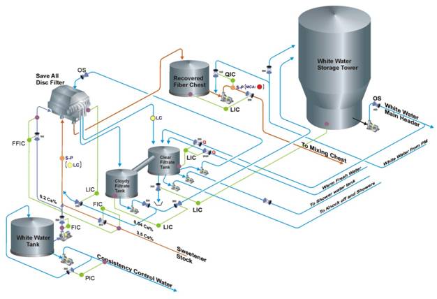 Далее, мы рассмотрим различные части процесса на одной машине по производству качественных бумаг. Прилагаемые рисунки показывают типичные примеры установки клапанов в процессе.