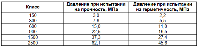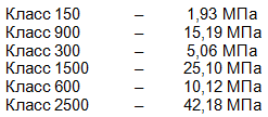 В табл. 1.10 приведены значения испытательных давлений для каждого класса