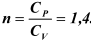 где n – показатель адиабаты, равной отношению