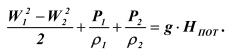 Для жидкостей, плотность которых в различных сечениях одинакова, это уравнение после умножения обеих частей на ρ, может быть приведена к более простому виду: