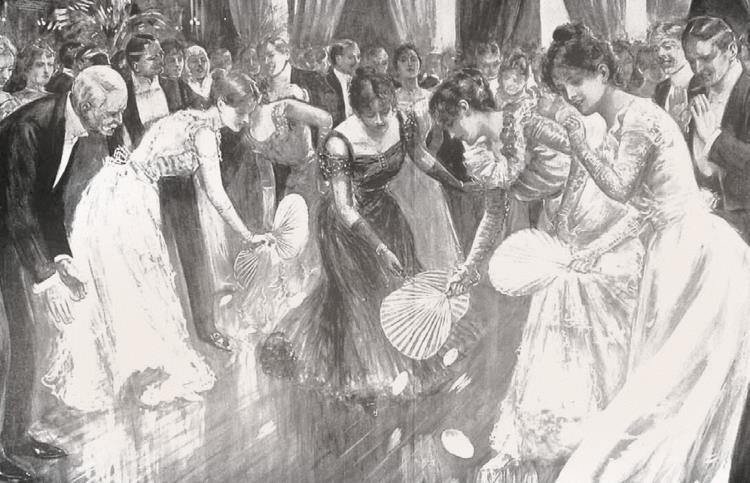 Овеев желание грёзовым веером,Сверкая устовым[3] колье,Графиня ударила веером страусовымОпешенного шевалье…Веер Ольги Николаевны произвел впечатление: веера присутствующих дам заколыхались чуть сильнее, выдавая их волнение. Да, веер, этот вечный обманщик, иногда отражает истинные чувства своей хозяйки. К тому же веерам плиантам не к лицу суетливые движения. Ими нужно обмахиваться медленно, с достоинством, словно выказывая уважение окружающим и самому вееру.