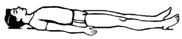 Любой вариант комплекса (контактного, бесконтактного или мысленного самомассажа) или занятия в целом при использовании в течение сеанса нескольких комплексов должен завершаться глубоким расслаблением. Релаксация выполняется в шавасане, лежа на спине, ноги и руки вытянуты, ладони направлены вверх, глаза закрыты (рис. 15). Возможна также релаксация в ардха курмасане: из положения сидя на пятках, большие пальцы ног вместе, колени разведены, необходимо наклониться вперед, уложить лоб на пол, соединить ладони вместе перед головой и как можно больше расслабить переднюю стенку живота (рис. 16). После длительного удерживания положения стоя рекомендуется использование релаксационного варианта урдхва прасарита падасаны: опереться на спину, ягодицы вплотную к стене, ноги вытянуты вдоль стены перпендикулярно полу (рис. 17). Если комплекс используется как составная часть более сложной практики, расслабление может быть выполнено после завершения всего занятия.