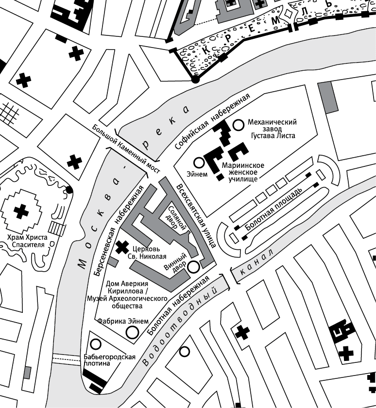 Многие из них жили по соседству. Около церкви, вокруг шоколадной фабрики и вдоль Водоотводного канала (Канавы) теснились дворы, застроенные деревянными и каменными домами с тамбурами, пристройками, антресолями, верандами, подвалами, чердаками, крыльцами, флигелями и мезонинами. Дома делились на квартиры, а квартиры на комнаты, каморки и «углы с койками», обитатели которых ходили или не ходили в церковь Св. Николая Чудотворца. Фабричный подмастерье Семен Канатчиков, который приехал на Болото из деревни Гусево Волоколамского уезда в 1895 году в возрасте шестнадцати лет и первое время регулярно ходил в церковь, жил в «огромном каменном доме, двор которого напоминал большой каменный колодец. У верхних этажей всюду на протянутых веревках болталось мокрое белье. Во дворе пахло едкой вонью и карболкой. По всему двору блестели грязные лужи и валялись отбросы овощей. У квартир и во дворе всюду толпился народ – шумели, кричали, ругались». Канатчиков жил в одной из этих квартир с пятнадцатью крестьянами из его уезда. «Одни были холостые, у других жены жили в деревне и вели свое хозяйство»[6].