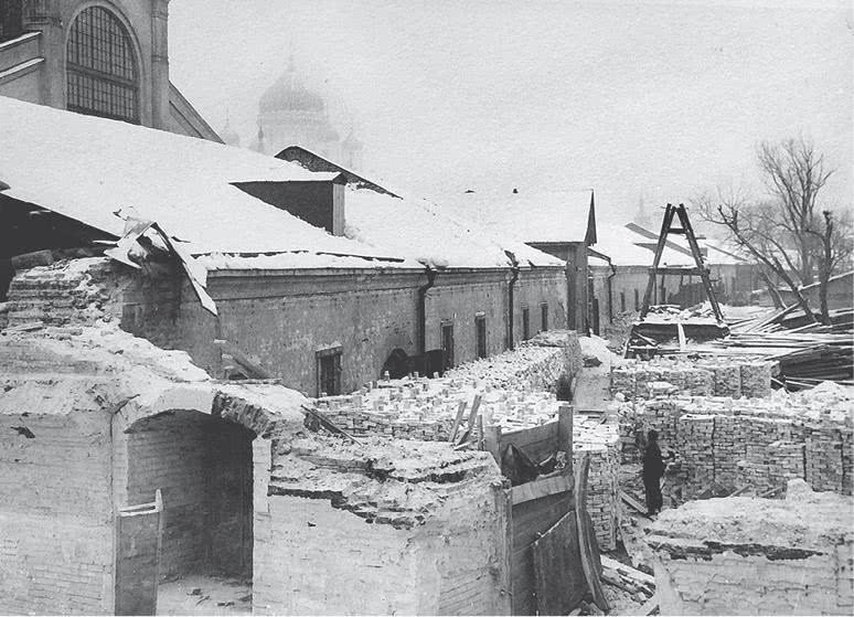 После половодья 1783 года вдоль южного края поймы был вырыт Водоотводный канал. Берега превратились в набережные, поперечные «ровушки» в переулки, а бывшие Государевы сады в густонаселенный месяцеобразный остров. Пожар 1812 года, выкуривший Наполеона из Москвы, уничтожил большую часть зданий и рассеял их жителей. Новые постройки – школы, трактиры, фабрики и купеческие дома – строились из камня. Бабьегородская плотина у западной оконечности острова сделала канал судоходным, а наводнения – менее частыми. Рядом с плотиной, на кремлевской стороне, вырос храм Христа Спасителя, освященный в 1883 году и посвященный «вечной памяти того беспримерного усердия, верности и любви к Вере и Отечеству, какими в сии трудные времена превознес себя народ российский, и в ознаменование благодарности Нашей к Промыслу Божию, спасшему Россию от грозившей ей гибели»[2].