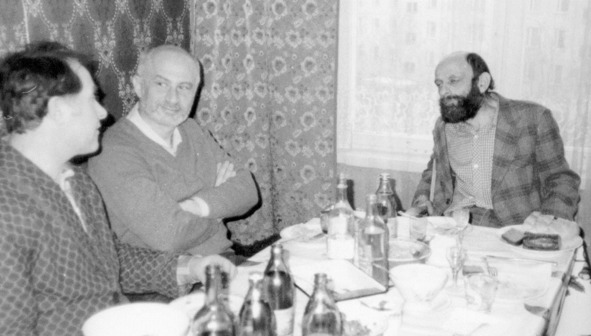 Внесеминарское застолье в доме В. Н. Сойфера. 1986 год. Слева направо: В. Н. Сойфер, Б. Ф. Гулько, Ю. А. Карабчиевский. Фото автора