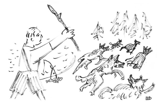 Но спокойно половить не удалось – откуда-то прибежала небольшая собака и, облаяв меня, удалилась. Вдалеке раздался ответный лай – и вот уже вокруг меня гавкает и рычит целая стая разномастных собак. Бежать некуда, я прижат к воде, как Чапаев к реке Урал, но повторять его подвиг нет ни малейшего желания: вода холодная, да и плавал я не очень. Помощи ждать неоткуда, а собаки, сокращая кольцо, лают все агрессивнее. Постепенно лай переходит в рычание, и мне уже действительно страшно.