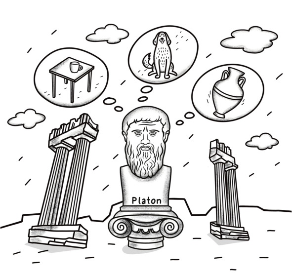 Давай теперь представим с тобой, что мы играем с волшебным столом. Да-да, именно с волшебным. Его можно красить в любые цвета, пилить ножки, делать маленьким или огромным, даже накрыть скатертью. Но в итоге всё равно будет понятно: как бы мы ни изменяли стол – это и есть стол. Почему так? Всё просто: потому что внутри этого стола есть кое-что особенное, то, что делает его столом, а, например, не кроватью или деревом. И это не какая-то вещь или табличка со словом «стол» – это его «столовость»! Вот про такую «столовость» и говорил мудрец Платон. Можно сказать, что это как магическая невидимая идея, которая никогда не меняется, даже если сам стол сильно изменится от наших экспериментов, когда мы его красили или пилили.