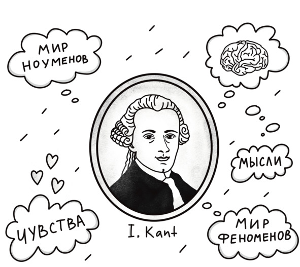 А вот вторая часть – это уже «вещи для нас», или «феномены». Это всё, что мы можем увидеть и узнать через наши чувства и разум. Думаю, ты уже слышал слово «феномен», но обычно под ним имеют в виду что-то необычное, выходящее за рамки. А у Канта, как видишь, всё немного иначе. Например, когда ты смотришь на красивую картину, то видишь её именно как феномен. А что она на самом деле собой представляет, там, в самом её сердце? А вот это уже загадка, которую мы не можем разгадать… Но это Кант так думал, а может, однажды ты вырастешь и поймёшь, как разгадывать даже такие сложные загадки.