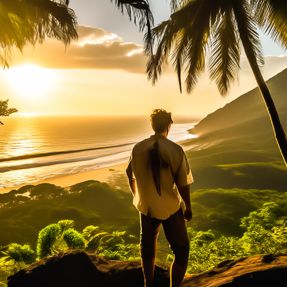 Остров был покрыт густыми тропическими зарослями, и Джек знал, что путь наверх будет непростым. Он начал взбираться на скалу, осторожно преодолевая каждый выступ и трещину. Взобравшись на вершину, он оказался на небольшой площадке, откуда открывался вид на остров.