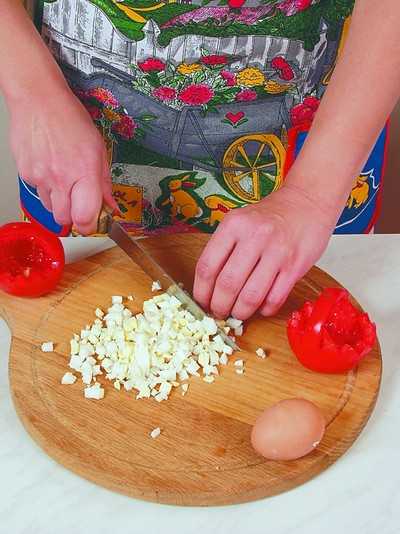 Сваренные вкрутую яйца очистить, затем нарезать или измельчить на терке.