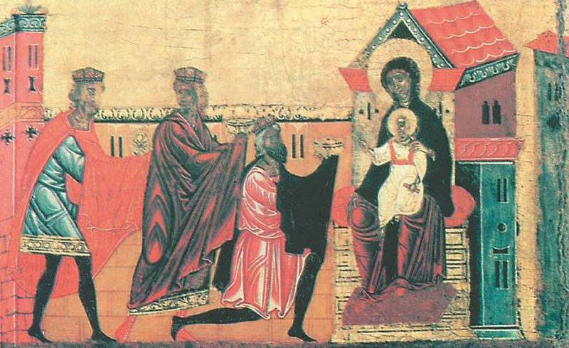 В Италии в конце XIII – начале XV столетия художники создавали иконы по типу византийских, но с добавлением собственных живописных традиций. В качестве примера можно привести две композиции: фрагмент алтарного образа «Мадонна с младенцем на троне» под названием «Поклонение волхвов» (около 1275–1280, ГМИИ, Москва), исполненную флорентийским мастером, и аналогичную композицию пизанского художника (около 1280, ГМИИ, Москва).