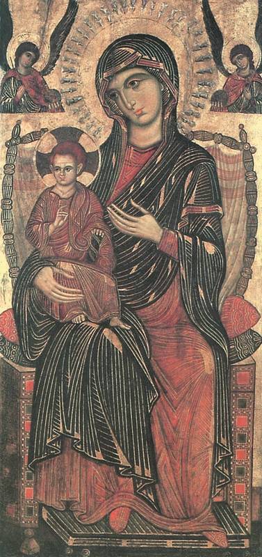 Среди многочисленных канонов изображения Богоматери самым популярным был канон Мадонны «Умиление». Именно к нему относятся две иконы неизвестных флорентийских мастеров с одинаковыми названиями «Мадонна с младенцем на троне» (около 1275–1280, ГМИИ, Москва).