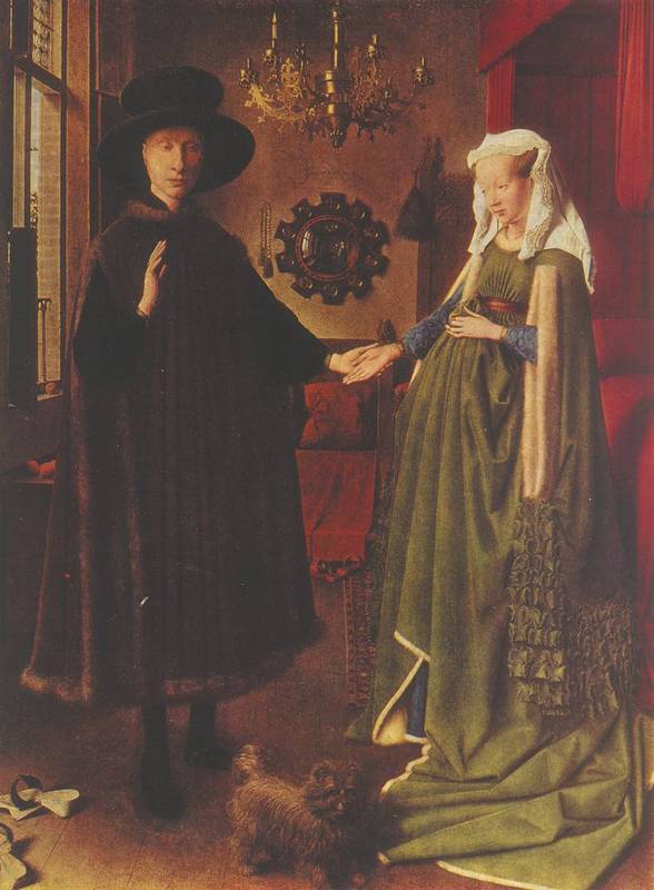В 1434 году Ян ван Эйк создал свой знаменитый шедевр – «Портрет четы Арнольфини» (Национальная галерея, Лондон). Искусствоведы полагают, что на картине изображен купец из Лукки Джованни Арнольфини с супругой Джованной Ченами. Считается, что художник изобразил момент бракосочетания, когда супруги дают друг другу клятву верности и любви.