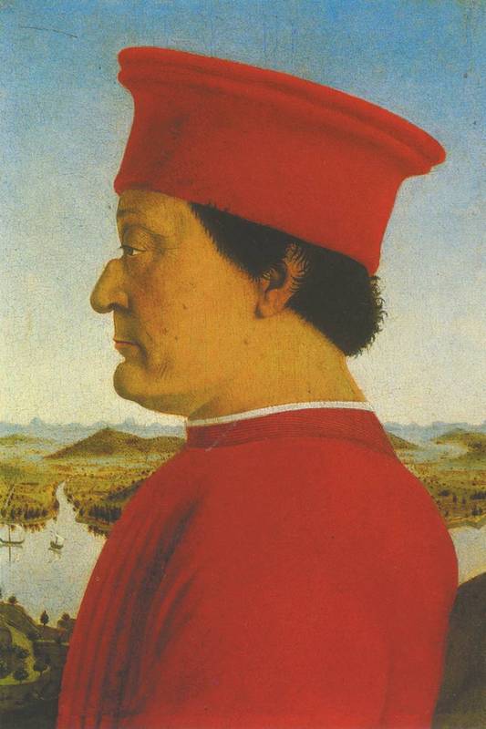 Федериго да Монтефельтро, герцог Урбинский, выдающийся военачальник, политик и меценат, был другом живописца. Пьеро делла Франческа изобразил его и в своей известной картине «Мадонна со святыми и ангелами и заказчиком Федериго да Монтефельтро» (ок. 1472–1474, галерея Брера, Милан).