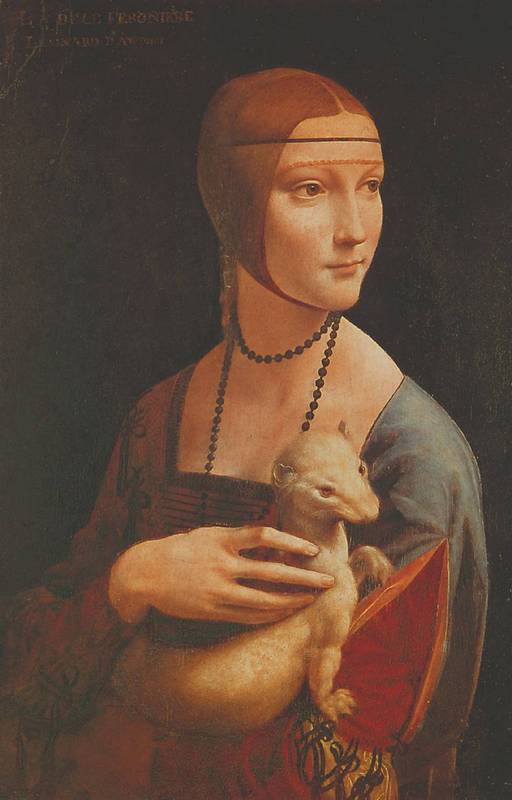 В Милане Леонардо да Винчи написал одну из самых известных своих работ в портретном жанре – «Даму с горностаем» (ок. 1490, Национальная галерея Чарторыйских, Краков). Предполагается, что на полотне представлена Чечилия Галлерани – возлюбленная миланского герцога Лодовико Моро. Главным доказательством такого определения личности модели является прочтение слова «горностай»: по-гречески название этого животного звучит как Gale, что соответствует фамилии придворной дамы – Галлерани. Леонардо да Винчи действительно писал портрет Чечилии, которая в своем письме к Изабелле д’Эсте подтверждает данный факт. Чечилия Галлерани была одной из самых образованных дам Милана. Она обладала многими талантами, и друзья прозвали ее современной Сафо.
