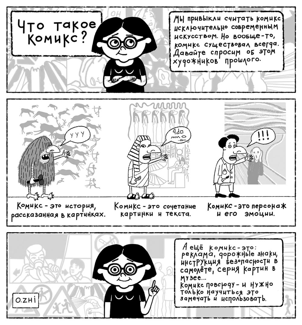 «Комикс окружает нас, просто мы не замечаем. Любой человек создавал рисованные истории – будь то детские рисунки с подписями, дневниковые записи с рисунками, схемы, инструкции»