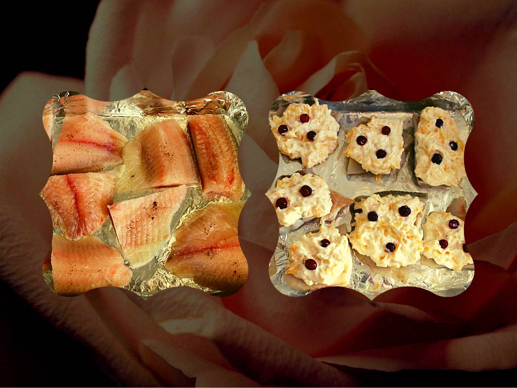 Разморозить тилапию. Включить духовку. Выстлать противень фольгой. После чего обильно смазать фольгу подсолнечным маслом и выложить на нее филе более гладкой стороной вверх. Каждый кусочек необходимо посыпать солью и молотым черным перцем. Теперь поместите противень с рыбкой в разогретую до 220 ℃ духовку на 10-15 минут в зависимости от ее размера.