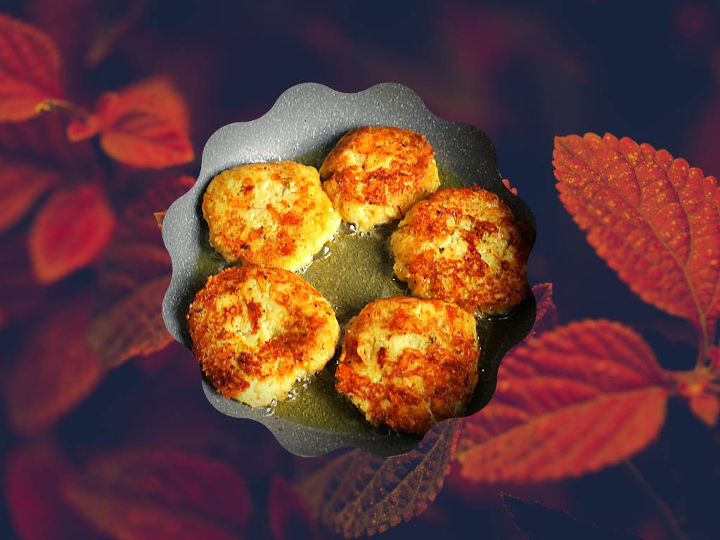 Получившиеся начиненные сыром с колбасой лепешечки следует жарить на политой маслом сковороде под закрытой крышкой до образования золотистой корочки.