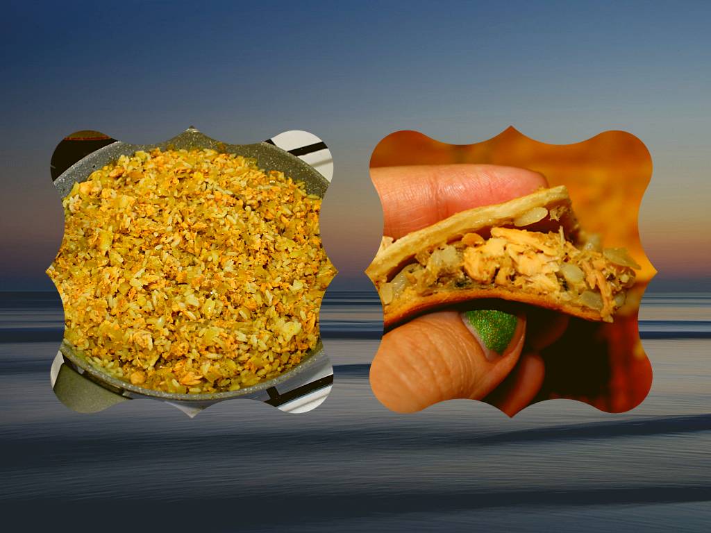 Рис отварить в подсоленной воде. На сковороде растопить сливочное масло, добавить к нему мелко нашинкованный лук и ССС, обжаривать на среднем огне 3-5 минут. Филе горбуши размять вилкой прямо в банке, не сливая сок. Получившуюся массу выложить в лук, перемешать. Добавить рис и вновь перемешать. Начинка готова.
