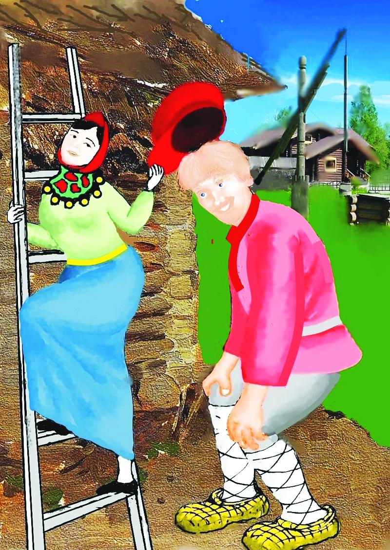 Вынесла она из дому праздничную отцовскую кепку красного бархата, поднялась по лесенке (иначе-то не достать) и надела кепку на Ивана.