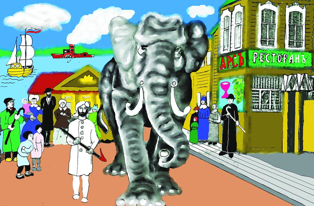 По Троицкому проспекту прошествовал слон, после чего шатёр под флагами на набережной стал ломиться от публики.