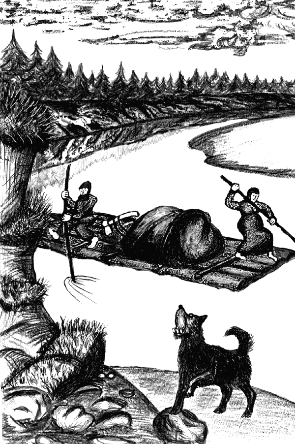 Она вынесла обмазанную глиной корзину с раскалёнными углями. Кошут подхватил жаровню, тушку собаки и отправился на задки стойбища в ельник.