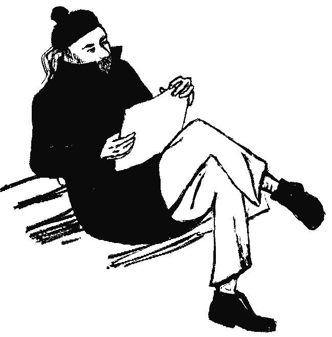 Сидел в пальто с поднятым воротником, в спортивной шапочке, в потёртых джинсах – зато в великолепных жёлтых «катерпиллерах» с рубчатой подошвой.