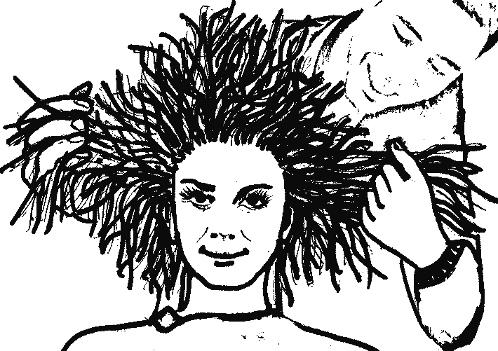 Мысли в тексте были заглублены порой до непроницаемости, всё равно что в музыке, и для каких-то уточнений, как в сноску, Вячеслав Ильич то и дело поглядывал на портретик-персонификацию этой Вари Броневой в конце колонки, на её волосы, словно взрывом интеллекта размётанные вокруг головы пучками косичек-дредов, – сразу всё становилось понятным, и Вячеслав Ильич салютовал несравненной Варе треском и пеной взламываемой зелёной банки «Greenalls».
