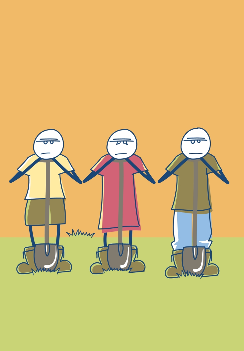 Ein sterbender Bauer sagt seinen Kindern, er habe auf seinen Feldern einen wertvollen Schatz für sie vergraben. Doch verrät er ihnen nicht wo. Schon bald nach seinem Tod graben die Geschwister den Boden um. Von links nach rechts, von oben nach unten, und zur Sicherheit noch einmal von vorne nach hinten. Nichts. Kein Schatz, kein Reichtum. Im darauf folgenden Frühling jedoch tragen die Felder – belüftet wie nie zuvor – die beste Ernte aller Zeiten.